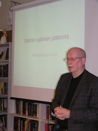 Professori Timo Vihavainen esitelmöi vuosikokouksessa aiheenaan yhteistyössä Venäjän Tiedeakatemian Venäjän historian laitoksen ja FSB:n arkistohallinnon kanssa koottu teos Stalinin salaisesta jatkosodasta. Kirjaan on koottu mm. NKVD:n Stalinille toimittamia raportteja jatkosotaa edeltävältä ajalta, samoin kuin sodan ajalta sekä rauhantekoa seuraavalta ajalta. Teos on jatkoa aiemmalle "Tuntematon talvisota" teokselle, jonka kohtalosta Venäjällä Vihavainen kertoi mielenkiintoisen tarinan. Se nimittäin katosi Venäjän puoleisesta jakelusta sangen pian julkaisunsa jälkeen ja tilalle ilmestyi julkaisu samalla nimellä mutta huomattavasti laimennetussa muodossa.