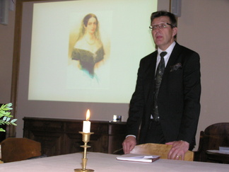 Dosentti Jyrki Paaskoski esitelmän aihe 19.10 Diakonissalaitoksella oli Aurora Karamzin.