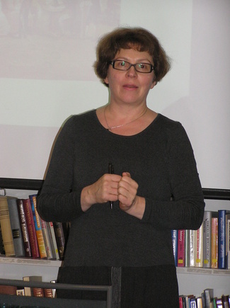 Marja Leinonen esitteli Venäläistä kauppiasyhdistystä ja sen kirjastoa. Yhdistyksen ovat perustaneet vanhat venäläiset kauppiassuvut 1918 ja se toimii edelleen ylläpitämällä kirjastoa ja järjestämällä jäsenilleen luentotilaisuuksia.